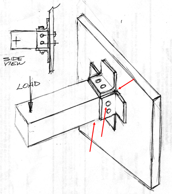 - There is a discussion about the configuration of bolts, including their presence on specific faces of the beam and whether they interfere with each other.