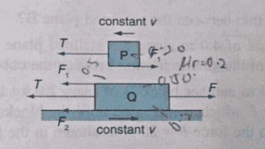 ok , i am confused now . for block Q to start to move( block p will remain stationary on top of the block q when block q starts to move ) , why the force F isn't equal to F2[ (u )(mass of p + mass of q)(g) ] only ??