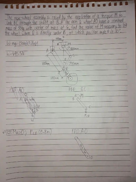 Hi I'm stuck at how to draw the free body diagram for thise nose wheel question