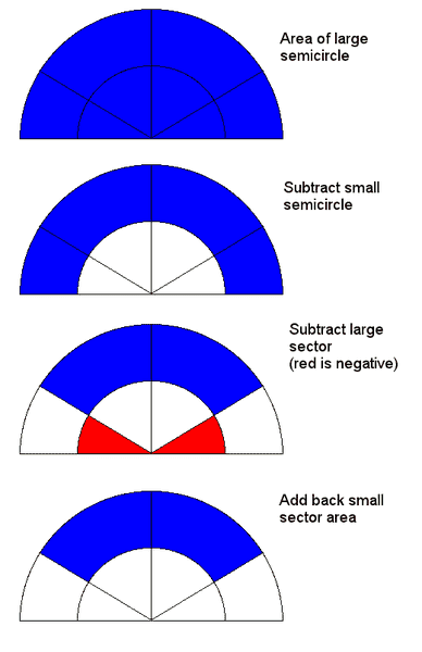 where r1 is the radius of the smaller semi-circle and r2 is the radius of the larger semi-circle.