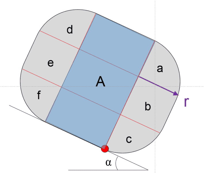 My name is Ignacio Pérez, a mining engineering student from Spain. I am trying to analyze the stability of a slab with rounded edges against a toppling failure. The slab can be considered rectangular-prism shaped (I provide a rectangular section in the enclosed picture) but the edges are rounded with a particular radius, r.