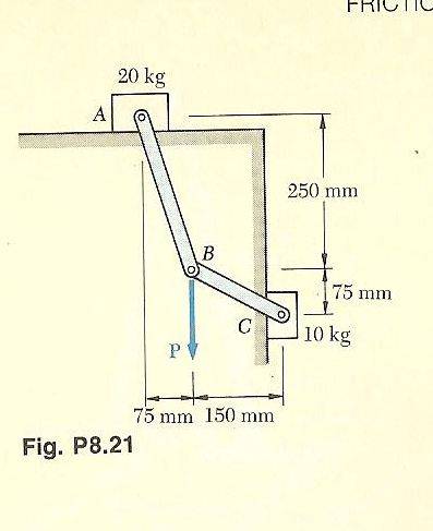 The discussion revolves around a statics problem involving two blocks (20KG and 10KG) being pushed against a wall with friction. Participants are attempting to determine the smallest force P required to prevent slipping, while navigating through the complexities of forces, normal forces, and torques involved in the system.