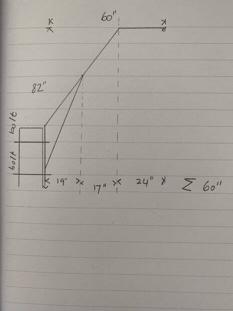 I wanted to use 1/8 inch thick 2 inch by 2 inch square hot rolled carbon steel tube. I am planning to hang the frame from a solid brick wall on a concrete base that is a minimum of 31" high and 12" thick and runs continuous around my house. I want to hang the chair from the tip and it needs to hold twice the weight of an adult of approximately 150LB (max weight 300LB). My idea was to use two large bolts to connect the frame to the wall by going through the wall and using a 2" by 2" steel backer. I have attached a picture for clarity. Is my 2x2 too strong or too weak? Thanks in advance, Yuchen