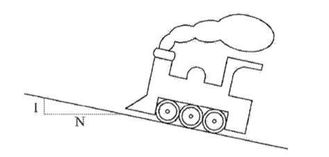 The discussion centers on calculating the steepest slope a train can climb without slipping on frosty rails, given a coefficient of friction of 0.1. The maximum friction force is determined using the equation Ff = μ(Fn), leading to a frictional angle of approximately 5.71 degrees. Participants suggest expressing the slope in the form "1 in n," with a proposed answer of 1 in 10.05. The importance of precise reading of the problem statement is emphasized for accurate problem-solving.