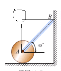 - Stick with mass m leans on the wall on B end. A end hinges on the center of the cylinder with mass M and radius r. Initial position has angle of 45 degrees. No friction on the wall or the hinges. Cylinder starts rolling from initial position, but the frictional force on the cylinder can be ignored. What's the acceleration of A point at the initial position