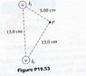 Two long parallel conductors carry currents I1 = 3.00A and I2 = 3.00 A, both directed into the page as shown below. Determine the magnitude and direction of the resultant magnetic field at P.