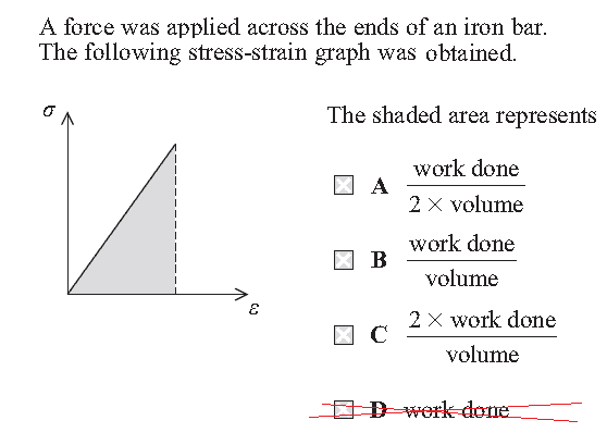 I would have thought the area under the line is (1/2) young's modulus . strain2. Not sure that helps.