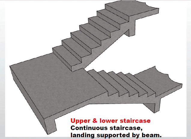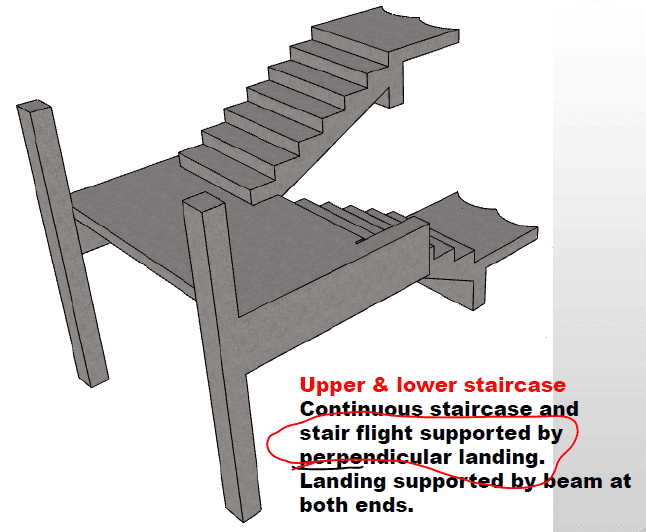 Why ? I think the author is wrong . I agree that for case 2 , the landing is said to be the support of 2 staircase ( up and down) . For the first case , why can't i say the landing is the support ?