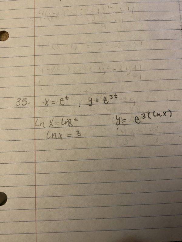 - Participants explore different methods to eliminate the parameter t from the equations x = e^t and y = e^{3t}. Some suggest using properties of logarithms, while others question the necessity of logarithmic manipulation altogether.