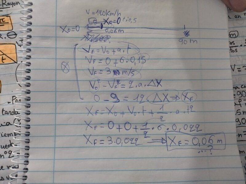 - A car going 120 km / h when the driver sees an obstacle to 90 meters away, step on the brake and the car applies to deceleration of 6 m / s ?, if the reaction time of the driver is 0.15 seconds to figure out whether it will stop before reaching the obstacle or collide with him. (using the formulas of cinematics, movements)