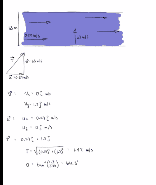 ##\vec u## represents the current of the river with ##\vec u =(0.57 \hat i + 0\hat j)##