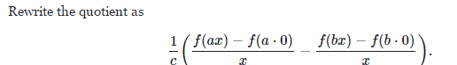 I have been working on the problem below and I am stuck. I am stuck primarily because of the part where is says x=0. If x-0, it should cancel everything out. The derivative of 0 is 0 so will cancel everything out I think, so I am not sure if that is the reasoning and the proof behind it.