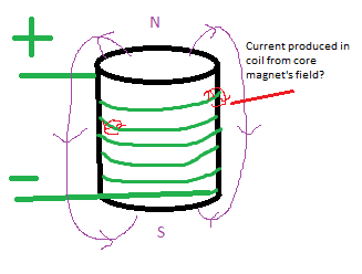 So what the image is trying to show is a small magnetic field would be induced in the coil from the big magnetic field... This is what I have been wondering all this time and from what I've seen I thought this was the case (but on such a small scale it would barely be measurable)
