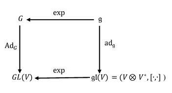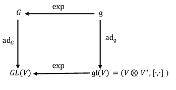 [Footnote] There is a slight caveat when generalizing though as the induced adjoint map on the group may be a projective representation having multiple representatives of the identity elements. The obvious example being spin representations of the orthogonal groups which are not technically speaking not quite representations of the Lie groups.