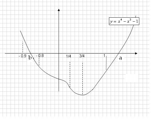 $f(-\dfrac{4}{5})=(-\dfrac{4}{5})^4-(-\dfrac{4}{5})^3-1=-0.0784$[/TD]