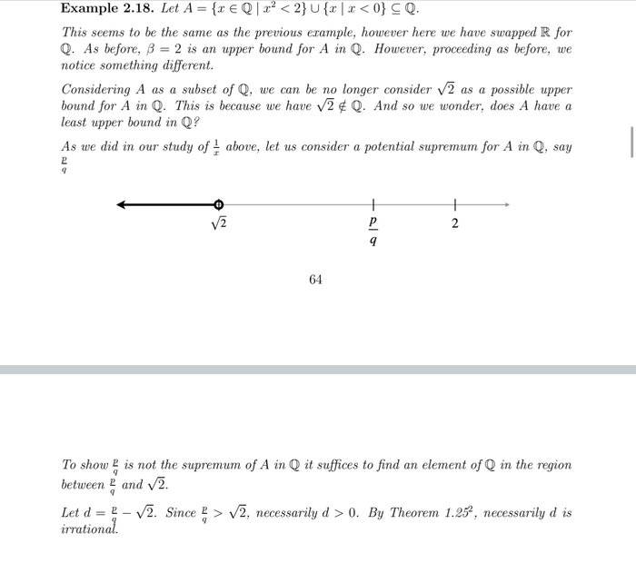 - prove that a supremum for a set doesn't exist; relations, total order and partial order