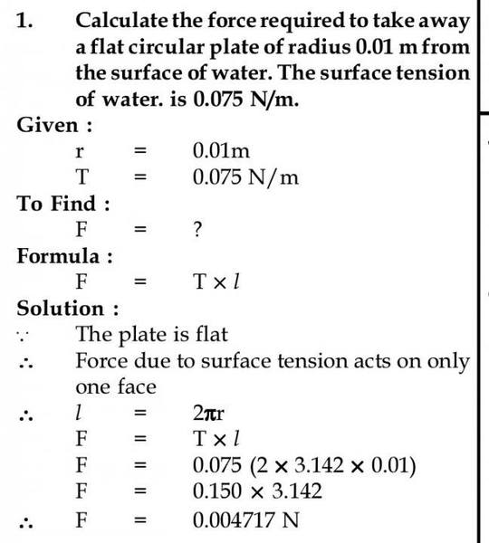 While studying surface tension I came across a(numerical example) problem which asks to find the force required to pull a circular glass plate of some given radius from the surface of water(assume plane of plate on water surface). Value of surface tension of water is also given in problem. The solution was done by simply multiplying surface tension of water with length of circumference. And it ends.