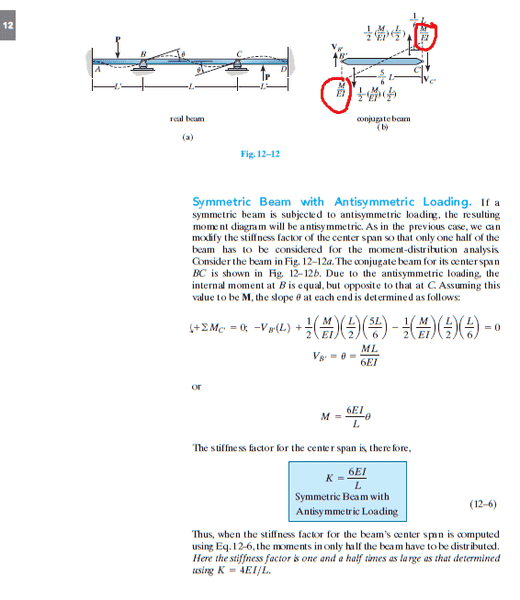 The discussion centers on the concepts of symmetric and antisymmetric loading in structural analysis, specifically regarding a circled beam subjected to loads. The first case is identified as symmetric loading due to the load P being applied at the midspan of segments AB and CD, resulting in a consistent M/EI diagram. In contrast, the second case is classified as antisymmetric loading, which does not maintain this symmetry, leading to a different M/EI response. The participants confirm that the loading conditions directly influence the behavior of the beam under these two scenarios.