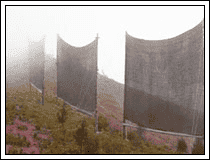 Water harvesting devices like those in the picture are used in Chile where it is very dry most of the time. Morning dew is often the source.