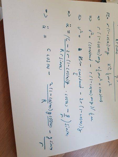- Participants explore the relationship between centripetal force and the normal force acting on the person in the slide. There are attempts to derive the tangential equation of motion and to linearize it using small angle approximations. Questions arise regarding the validity of equating forces and the implications of the normal force in relation to work done.