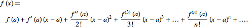 f(x + a) = f(a) + xf'(a) + x^2f''(a)/2! + ... + x^nf^n(a)/n! ... where f^n(a) means the nth derivative of f(a)