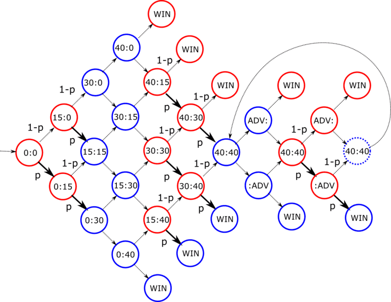Have you read the post#8 above (by erland). Outside of exception (like a tiebreak for which I don't know the full rule off-hand), in normal games you just have one player serving through-out a game (note that "game" is just part of a "set" and sets form a "complete game"). So essentially there is one parameter ##x## (which could be taken to be the probability of serving player winning a point or the probability of receiving player winning). The other quantity would just be ##1-x##.
