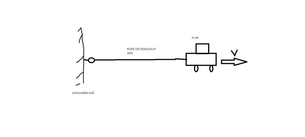 The discussion revolves around the concept of tension in a rope, particularly in the context of a car pulling on the rope while moving at a constant velocity. Participants are exploring the relationship between force, acceleration, and tension, questioning their intuitions and assumptions regarding these physical concepts.