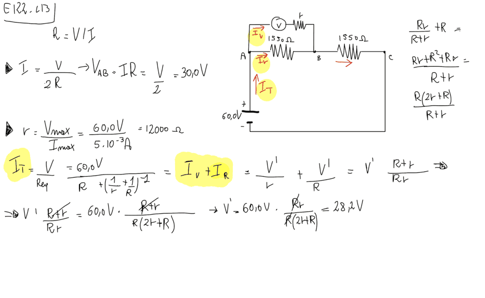 An analogic voltmeter has a bottom scale of ##60.0V## and uses a galvanometer with a maximum current range of ##5.00mA##: