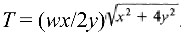 - Participants are attempting to derive an expression for tension T based on the given load and the shape of the wire. There are questions about the correctness of initial assumptions and the form of the equations being used.