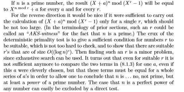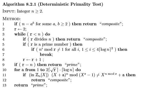 In order to obtain such an algorithm, one tests the congruence $(X+a)^n \equiv X^n+a$ not "absolutely" in $\mathbb{Z}_n[X]$, but modulo a polynomial $X^r-1$, where $r$ have to be chosen in a clever way. That is, one compares, in $\mathbb{Z}_n[X]$, the polynomials