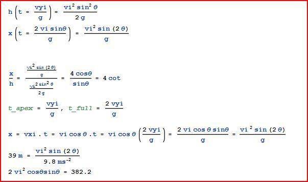 There are discussions about the missing angle of launch and how it affects the calculations. Participants are also considering the implications of assuming a 45-degree launch angle for maximum range, and the constraints of the problem are acknowledged, particularly regarding the need for more information to arrive at a definitive conclusion.