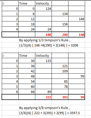 Then , I apply 3/8 Simpson's rule ( for interval 0-6) , i get ans = 3597.5 .