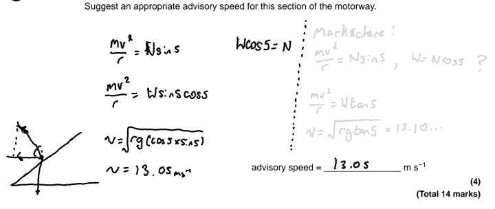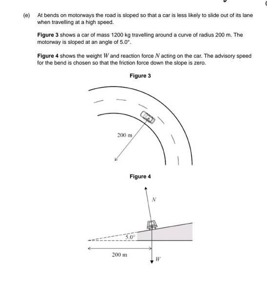 Figure 7 shows a car of mass 1200 kg travelling around a curve of radius 200 m.