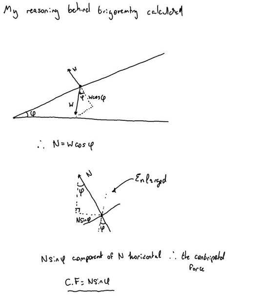 Hello all, I am sadly stuck on the last part of a circular motion question sheet I was given for homework. I have a mark-scheme with me, but it has actually given me more questions than answers. I have attached my working, and how I arrived at my answer, and the differences it has with the mark-scheme answer. To note, the mark-scheme answer rounds to my answer, but the trigonometry they used is entirely opposite to mine. I would really appreciate some help in understanding: