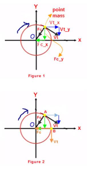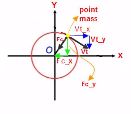 In the picture, it might be that I'm incorrectly resolving the vectors into components. A point mass is following a circular motion in clockwise direction. The centripetal force vector Fc is resolved into Fc_x and Fc_y components, and the tangential velocity vector Vt is resolved into Vt_x and Vt_y. The components Fc_y and Vt_y are in the same direction. But weren't force vector and velocity vector supposed to not have any components parallel to each other? Where am I going wrong? Please help me.