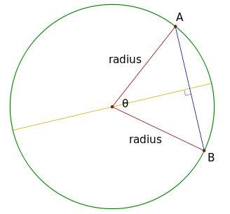 In the picture below let's assume that the angle θ is 1 radian, i.e. 57.3°, radius is 1 m. It would mean that the length of arc AB is also 1 m. The length of chord AB is 2*r*sin(θ/2) = 2*1*sin(57.3°/2) = 1 m