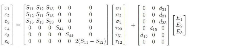 I'm studying about piezoelectric material. The electro - mechanical property of this material can be described by the following constitutive equation: