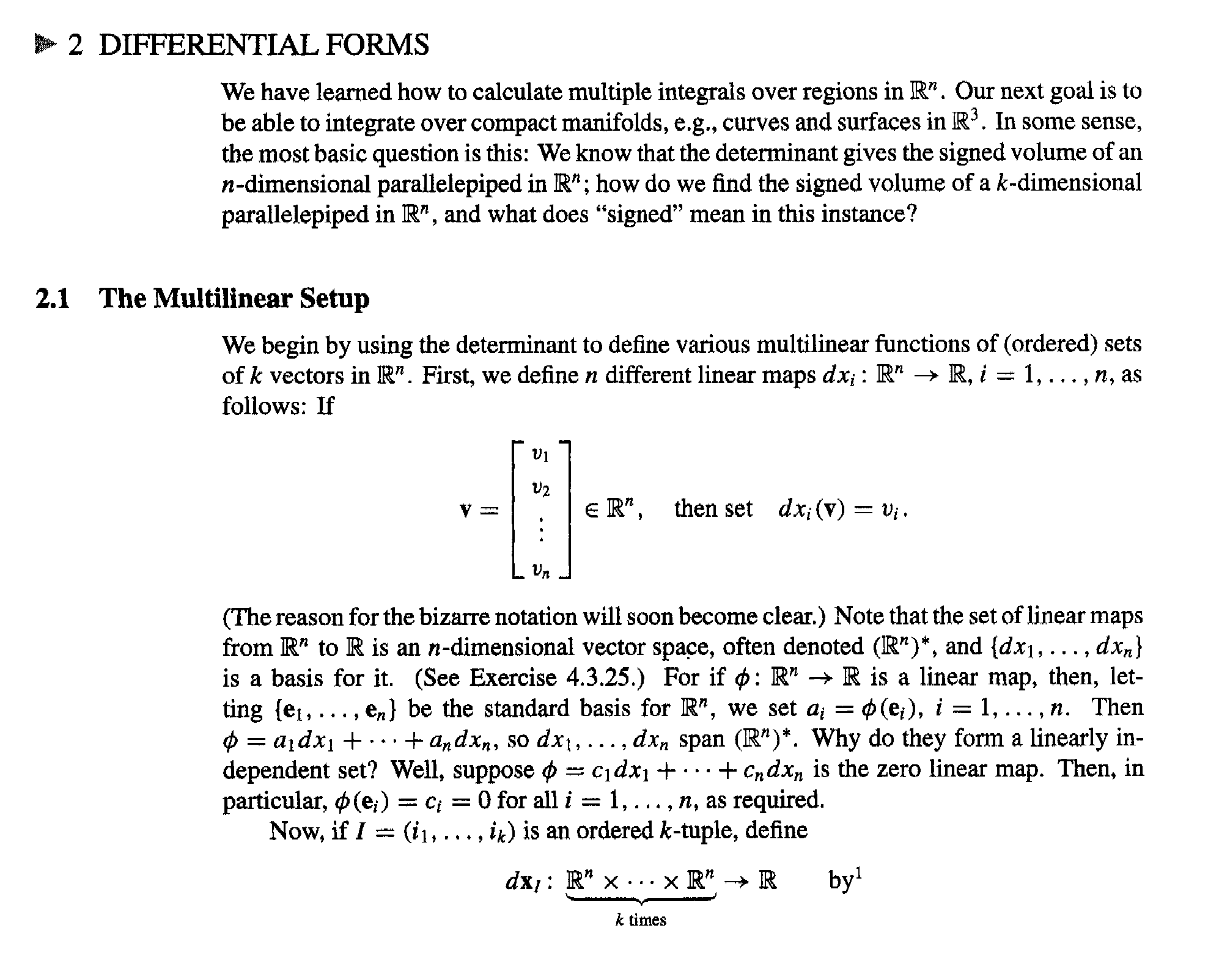 " ... ... Then $$\phi = a_1 dx_1 + \ ... \ ... \ + a_n dx_n$$ ... ... "