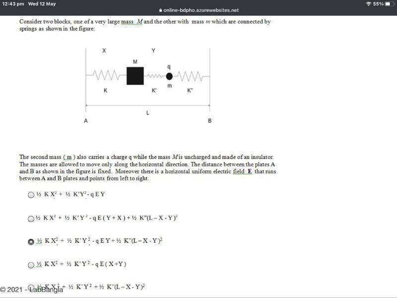 The attachment explains the problem setup but then it offers some choices but it doesn't mention what is the question. It looks like it is asking what is the total potential energy of the system.