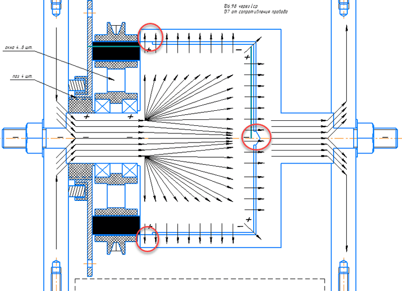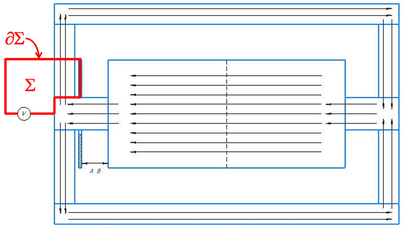 Please excuse me for the poor-quality model. Actually, it's not a shielding disk. This part is called a current plate. It is electrically isolated from the generator. I have drawn the path of the electric current with an intermittent line. In this model, the moving external circuit is a short section A-B. In the practical design of the generator, I made this circuit in the form of carbon brushes that pass through the pulley and rotate with it. I assume that instead of brushes, you can use a liquid conductor, such as mercury, which will rotate inside an annular channel with a rectangular cross-section.renormalize said:This statement contradicts Maxwell's equations. Per your post #56, your external circuit forms a closed path I label as ##\partial\Sigma##, which is the boundary of an enclosed surface that I denote as ##\Sigma##: