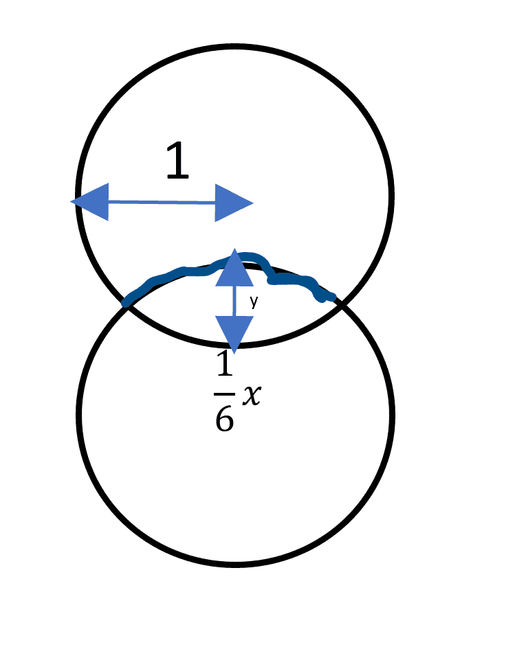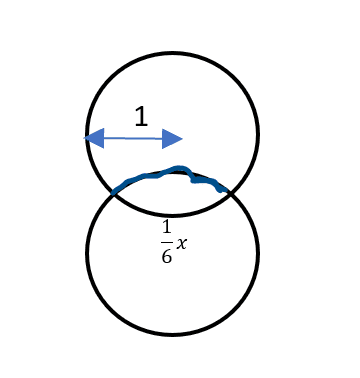 In this diagram, x is the circumference of the circles, and the bit of the bottom circle which is drawn blue (the overlapping bit) is 1/6th of the whole circumference.
