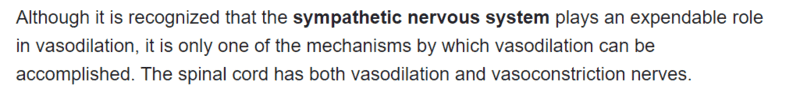 The discussion revolves around the role of the sympathetic nervous system in the regulation of blood vessel behavior, specifically focusing on vasoconstriction and vasodilation. Participants explore various physiological responses and mechanisms, addressing both theoretical and practical implications.