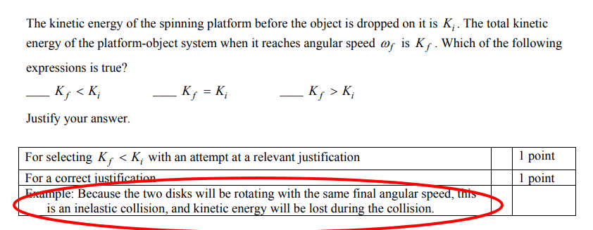 From this I inferred that ##\frac 1 2 I_{platform} {\omega_i}^2 \neq \frac 1 2 (I_{platform}+I_{disk}) {\omega_f}^2##.
