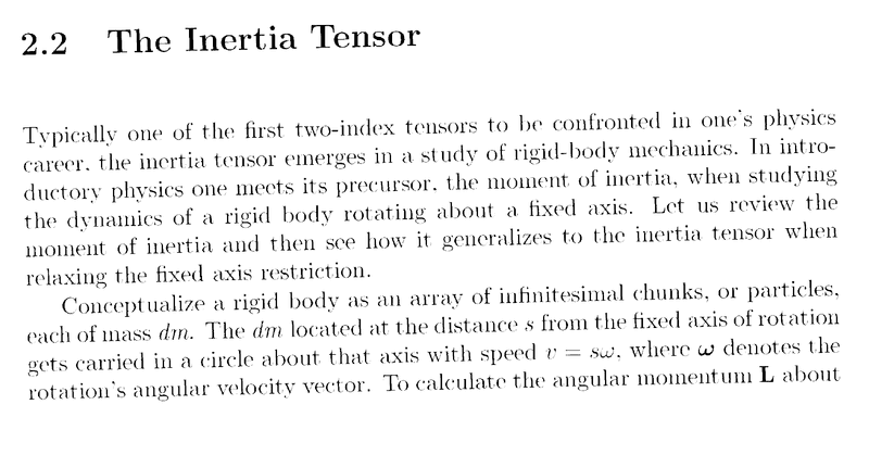 - I am having trouble following Neuenschwander's logic in deriving the components of angular momentum ... as he proceed to derive the components of the inertia tensor