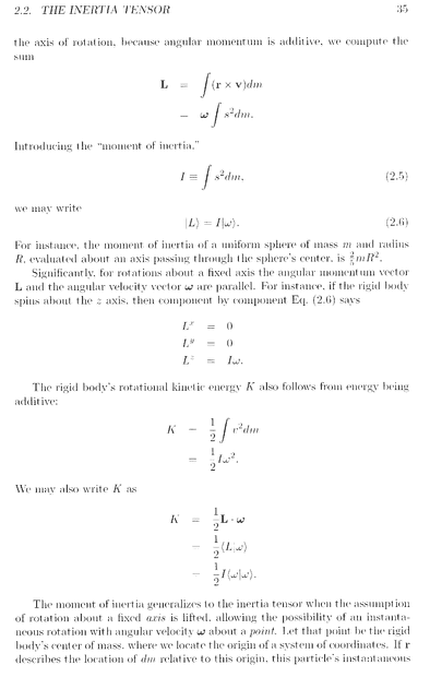 " ... ... ## L = \int [ ( r \bullet r ) \omega - r ( r \bullet \omega ) ] dm ## ... ... ... (2.9)