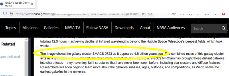 I'm completely puzzled. The statement, on the NASA web site, about the age of the galaxies in the image says