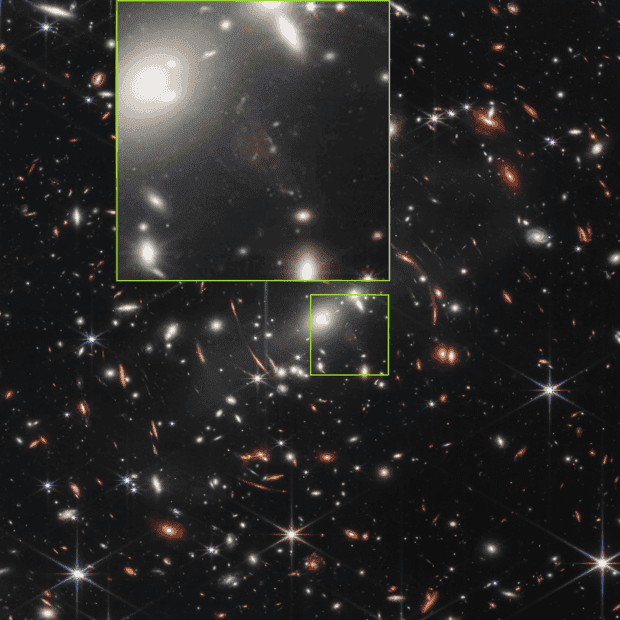 I understand this to be the distance to the SMACS 0723 group, not the faint galaxies in the background.