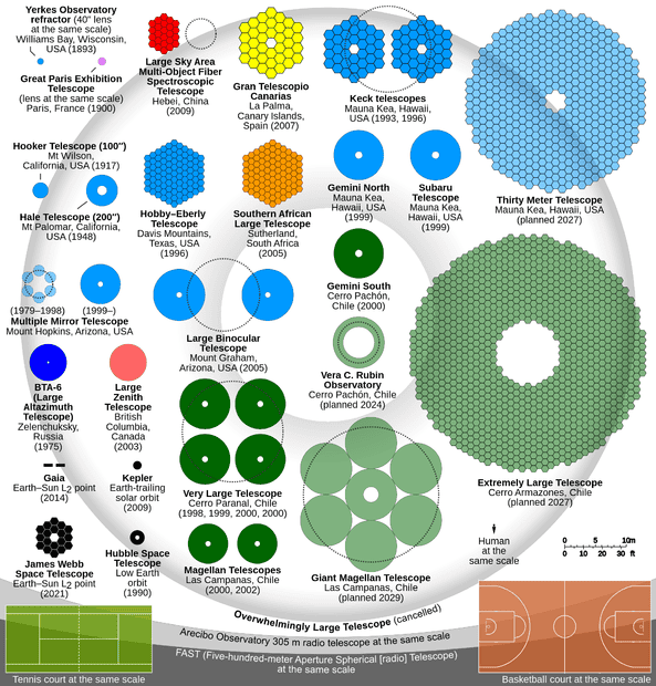 The Vera C Rubin Observatory will be f/1.2. Keck is f/1.75. Hubble f/24. Giant Magellan Telescope will be f/8.
