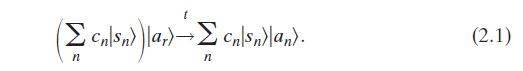 Put differently, if an ensemble interpretation could be attached to a superposition, the latter would simply represent an ensemble of more fundamentally determined states, and based on the additional knowledge brought about by the results of measurements, we could simply choose a subensemble consisting of the definite pointer state obtained in the measurement. But then, since the time evolution has been strictly deterministic according to the Schrödinger equation, we could backtrack this subensemble in time and thus also specify the initial state more completely (“postselection”), and therefore this state necessarily could not be physically identical to the initially prepared state on the left-hand side of Eq. (2.1).