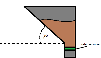 The problem is knowing what the minimum angle the side of the container should incline at, so that the grains will be able to slide down through a tube using gravity. Let's say that an individual grain ranges from 4-7 mm and weighs about 0.028 g. The container will be able to hold up to 5 kg of these grains. One serving will contain around 340 g of grains. The container needs to be completely empty once all the servings of grain has been dispensed, which can take about half or more of a month. That is about 14-15 servings.